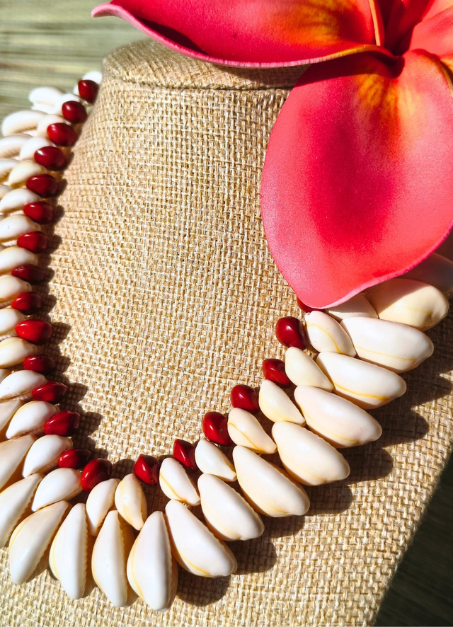 Inspiré des parures du Pacifique, Ahi associe cauris protecteurs et graines de pipiti’o popa’a au rouge profond, symbole du feu et de l’énergie vitale. Pensé comme un talisman, il réchauffe et veille, rappelant la force tranquille que l’on porte en soi. Monté à la main, cet exemplaire unique capte la lumière et l’âme de chaque matière, se portant au quotidien ou lors de moments symboliques.