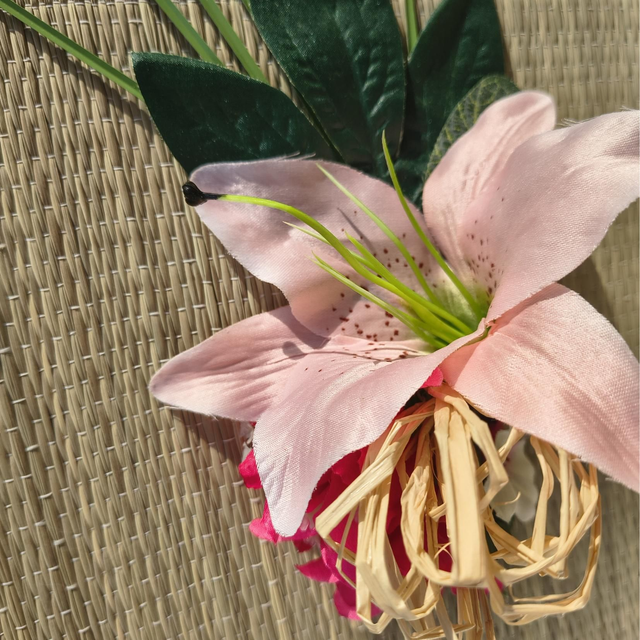 Chaque création est assemblée à la main, avec une attention portée aux volumes, aux nuances et à l’équilibre floral.
