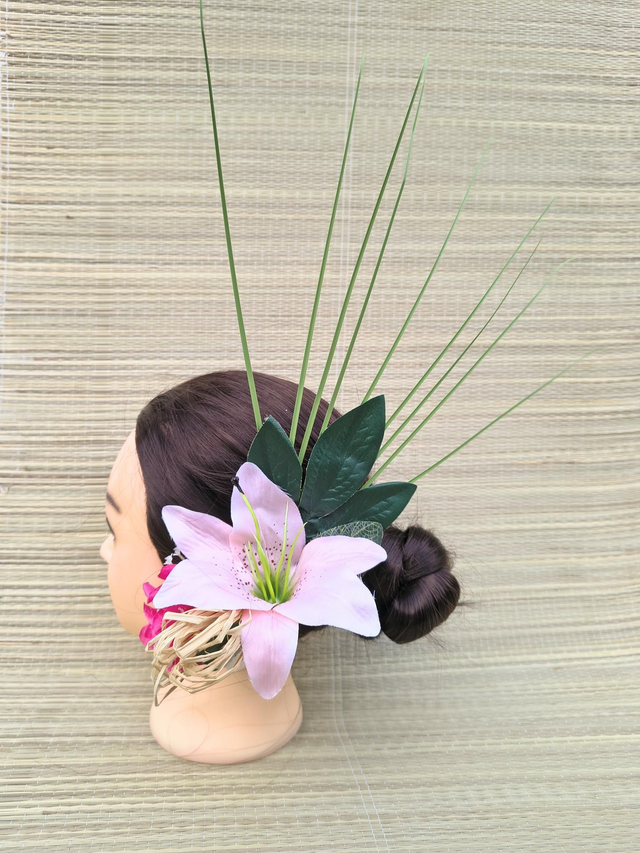 Pensée comme une véritable pièce de coiffure, la po’ara grande version attire le regard tout en restant légère à porter.