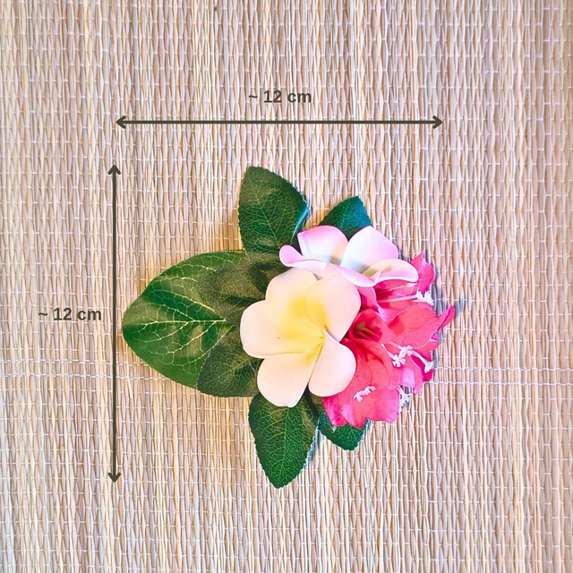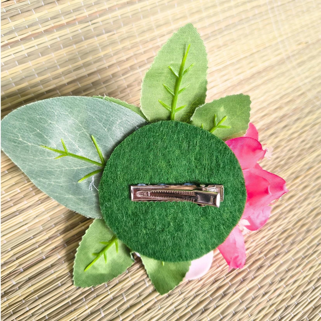 Matières : fleurs et feuillages artificiels, pince crocodile de 4.5cm, feutrine